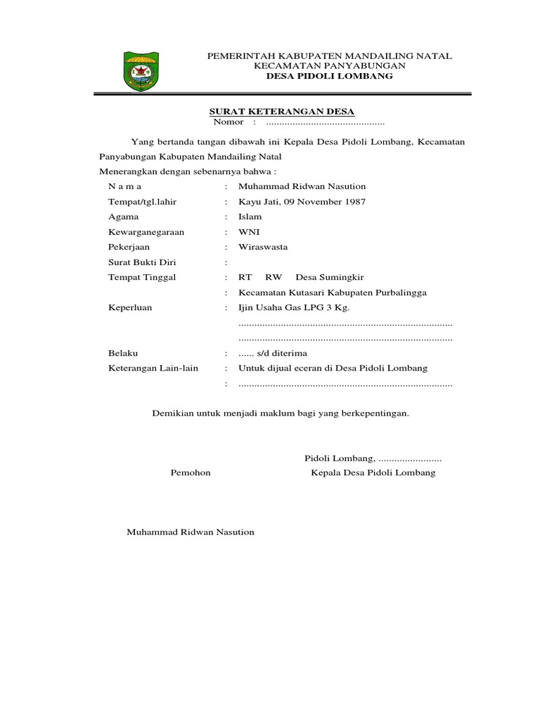 Contoh Surat Keterangan Usaha Lpg Nusagates